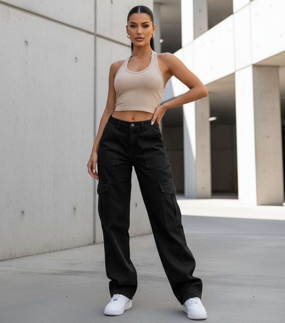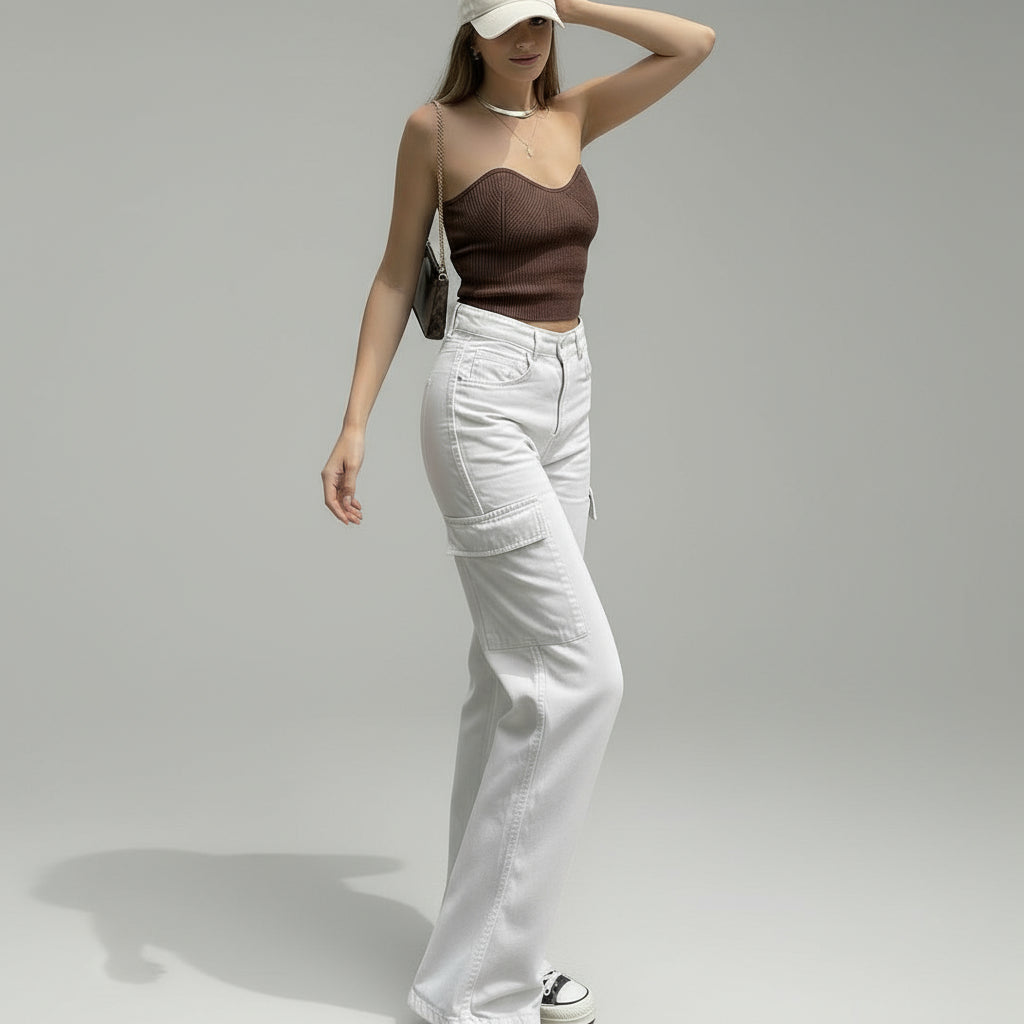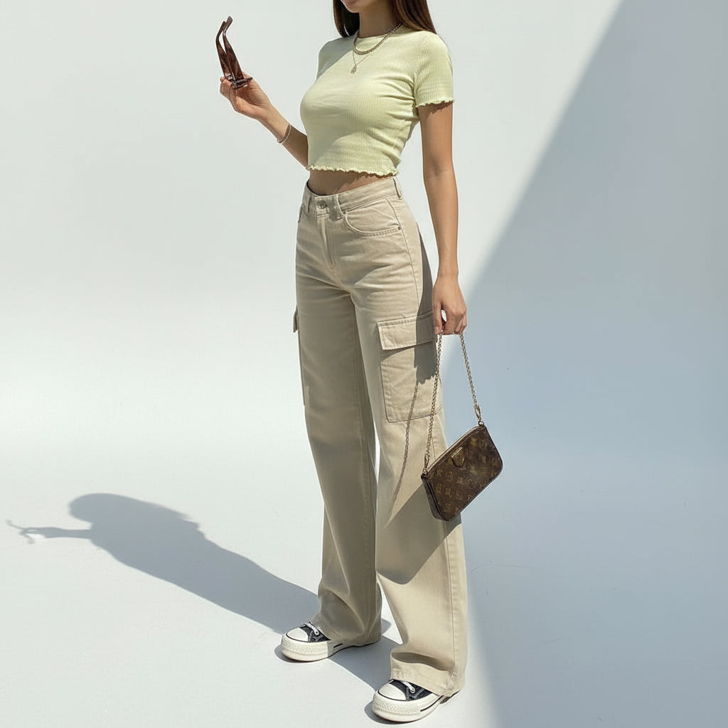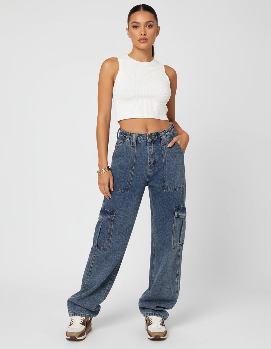 Jean taille haute à coupe droite avec détail papillon brodé sur le côté. Un look chic et décontracté, parfait pour la saison. Confortable, féminin et tendance.